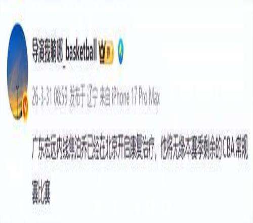北京时间3月31日消息,广东男篮内线焦泊乔,已正式确认无缘本赛季剩余所有比赛——不是因伤,而是因“心病”。