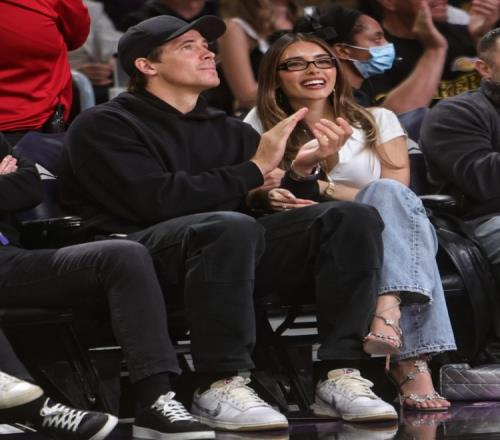 NBA常规赛,湖人VS骑士,坐在贾斯汀·赫伯特(NFL球员)旁边的美女吸睛。